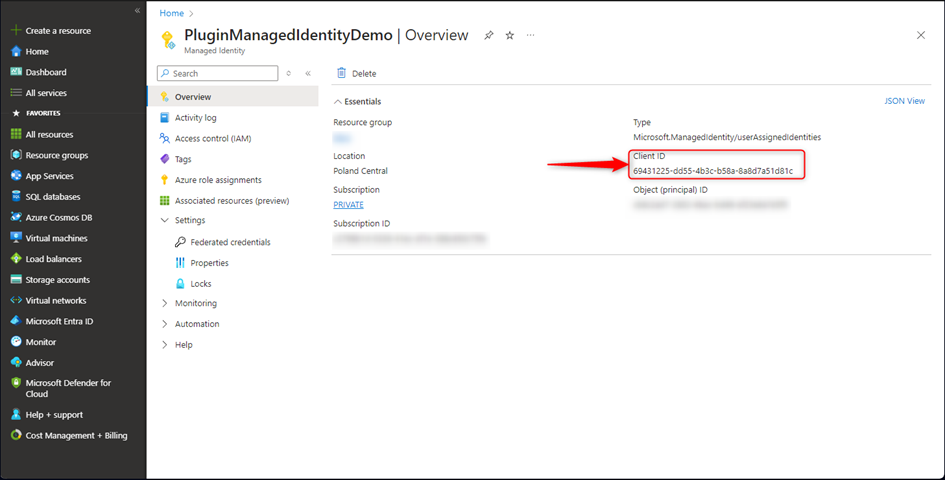 After the new resource is created, we need to copy a Client ID, which will be used later.
