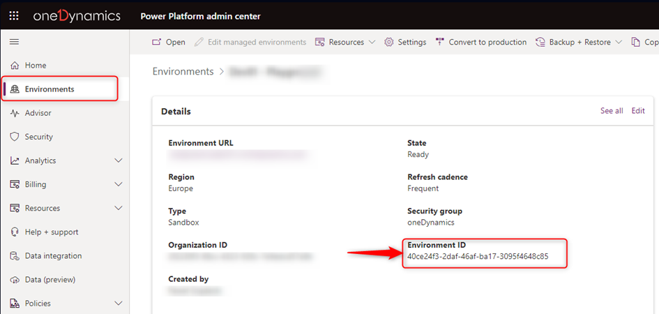 Where Environment ID Prefix is 30 first characters from environment’s identifier, which can be found in Admin Power Platform Portal. Suffix is last 2 characters. Please remember to remove dashes.