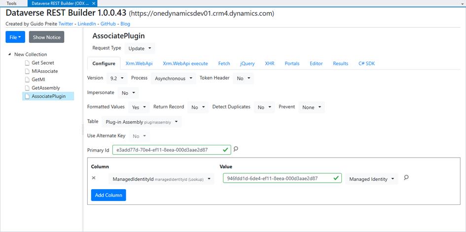 Now, using Dataverse REST Builder, let's call the action that triggers the plug-in: